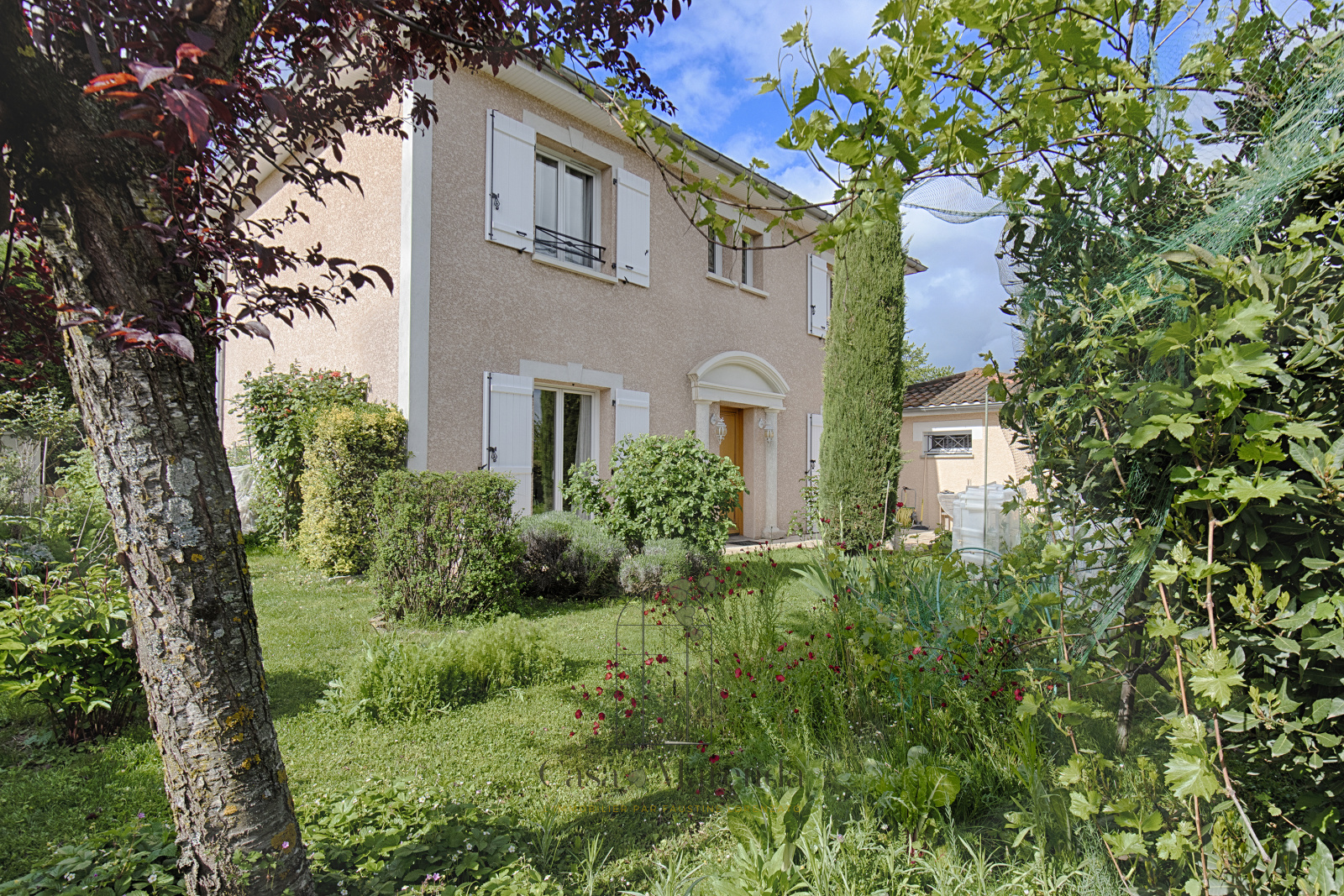Vous profiterez également d'un garage et d'un jardin bucolique de 500m² plat arboré et clôturé.