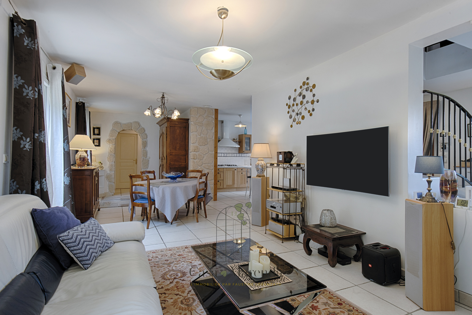 Elle se compose au rdc d'une entrée donnant sur une pièce de vie traversante, avec son coin salon, séjour et salle à manger. Bordés d'ouvertures, ces espaces vous apporterons luminosité et vous permettrons un accès pratique aux terrasses extérieures. La cuisine en chêne ouverte et entièrement équipée vous ravira par son côté convivial et fonctionnel.