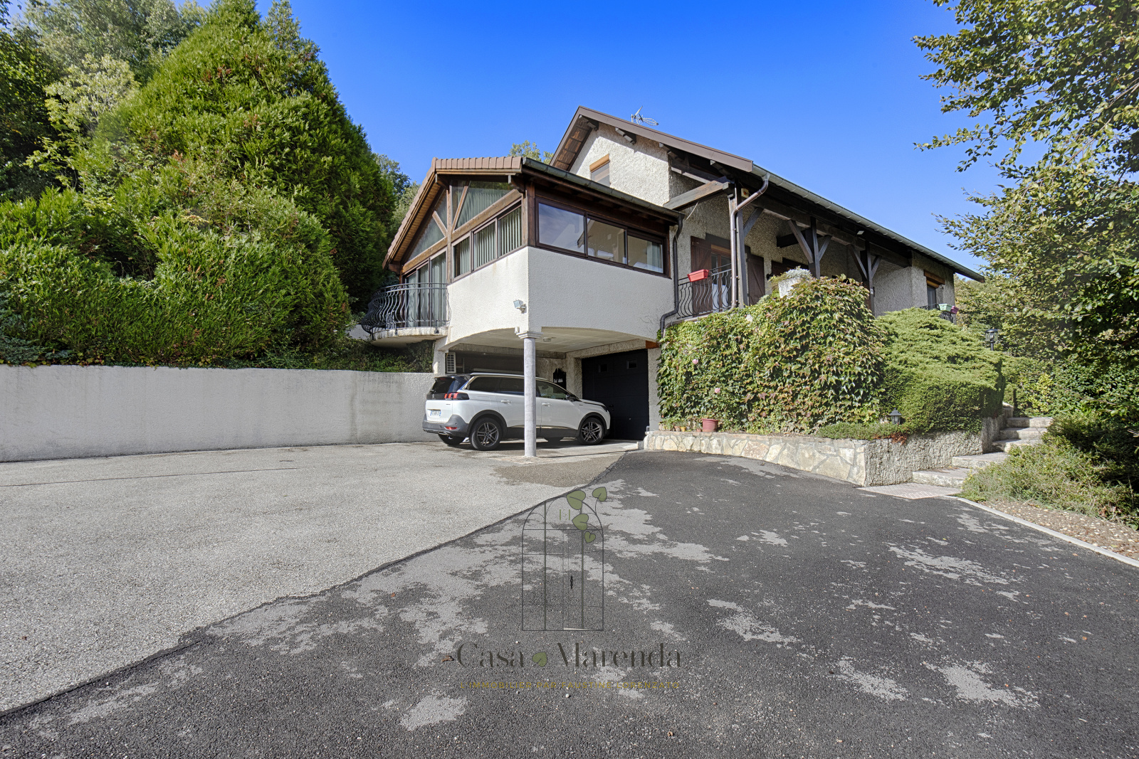 EN EXCLUSIVITE! Idéalement située à Nivolas-Vermelle, dans un quartier residentiel, proche des commerces, restaurants, écoles, de l'accès autoroutier et de la gare de BOURGOIN-JALLIEU, cette maison vous apportera confort et qualité de vie! Dominante par sa situation, elle se niche au coeur des arbres et vous laissera apprécier une vue panoramique. Vous trouverez au rdc : une entrée desservant une salle à manger traversante avec ses deux terrasses, son poêle à bois et sa cuisine ouverte equipée, un bureau. Une jolie extension veranda en charpente traditionnelle de 25m² vient prolonger cet espace de vie , pour un coin plus cocooning avec toujours, cette vue dégagée. Le coin nuit de ce niveau propose également 2 chambres, des toilettes et une salle d'eau moderne. On monte à l'étage où se trouvent un espace dégagement, pouvant servir de deuxième salon ou coin bureau .....ainsi que d'une 3ème chambre spacieuse de 35m² au sol avec poutres apparentes. Vous benificierez également à ce second niveau, d'un très grand grenier pour votre stockage possibilité d'amenager aussi un dressing XXL, une chambre d'amis, laissez libre cours à votre imagination en fonction de vos besoins!! Un sous-sol de 80m² vous sera de la plus grande utilité il se compose d'une buanderie un double garage et d'une cave, porte de garage sectionelle neuve . La parcelle de 3140m² assurera votre tranquilité, une partie est constructible! Une piscine hors-sol couverte par son dôme (dont vous pourrez profiter 6 mois de l'année), vient agrémenter les prestations de ce bien. Parkings exterieurs, cour goudronnée et sécurisée par son portail motorisé coulissant. Volets roulants electriques avec commande individuelle et centralisée Côté énergie : Pompe à chaleur reversible + poele à bois Côté construction: Charpente traditionnelle, béton banché, briques... Vous l'avez compris cette maison offre un super potentiel en plus de sa qualité de construction indéniable et ses équipements de qualité. Une visite est fortement recommandée ! Faustine LORENZATO votre agent immobilier depuis 2011 sur le secteur de BOURGOIN-JALLIEU 0673231453 Honoraires à la charge du vendeur Consultez :www.georisques.gouv.fr CASA MARENDA IMMOBILIER L'immobilier par FAUSTINE LORENZATO agent et conseillère immobilier sur le secteur de Bourgoin -Jallieu et tout le Nord - Isère ESTIMATION-TRANSACTION-LOCATION-COACHING DECO-DECORATION INTERIEURE-VENTE -ACHAT - MAISONS- TERRAINS- APPARTEMENS-