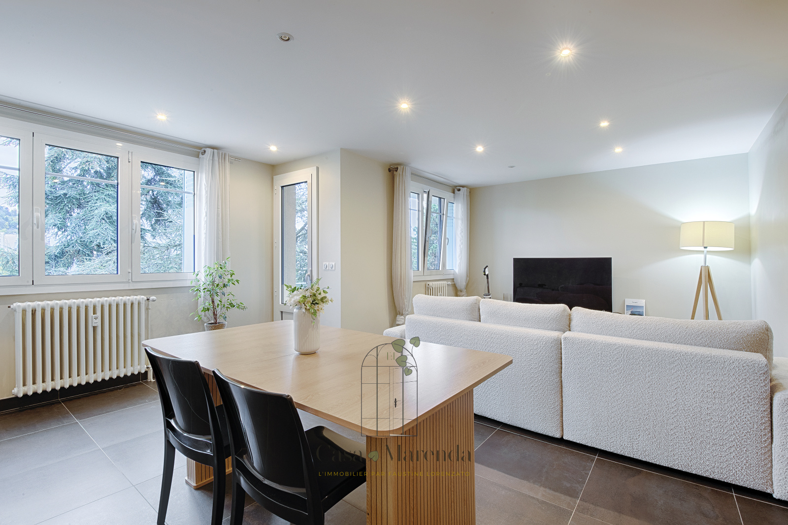 À deux pas du centre-ville de Bourgoin-Jallieu, laissez-vous séduire par CASA COSY, un superbe T3 de 72 m2 traversant, situé au 3ᵉ étage d’une résidence sécurisée avec parkings. Entièrement rénové avec goût et des matériaux de qualité, cet appartement spacieux et lumineux offre un cadre de vie à la fois moderne et chaleureux. La pièce de vie s’ouvre sur un balcon plein de charme, avec une vue dégagée sur de beaux espaces verts — un vrai souffle de verdure au quotidien . La cuisine, quant à elle, est entièrement équipée et bénéficie de son propre balcon, idéal pour le café du matin. Deux belles chambres dont une avec dressing , une salle de bains contemporaine, un WC séparé et une cave complètent ce bien fonctionnel et plein d’élégance. Localisation idéale : à 12 minutes à pied de la gare, proche des bus Ruban, des commerces de Champaret et des écoles. Luminosité, confort et praticité au quotidien ! Casa Cosy n’attend plus que vous ; Contactez Faustine Lorenzato pour une visite 0673231453 www.casamarenda.com mail : contact@casamarenda.fr