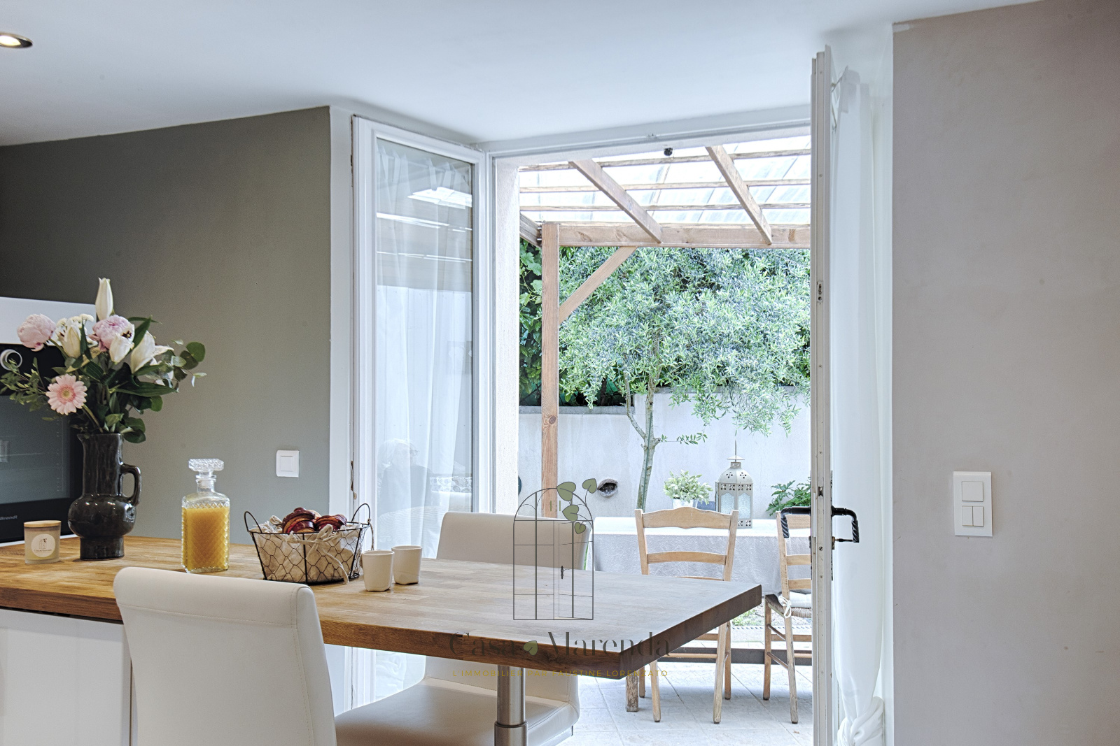 Ces espaces de plain pieds donnent accès à la terrasse cocooning et abritée, ainsi que son jardin à l’abri des regards, avec coin barbecue pour vos soirées d’été.