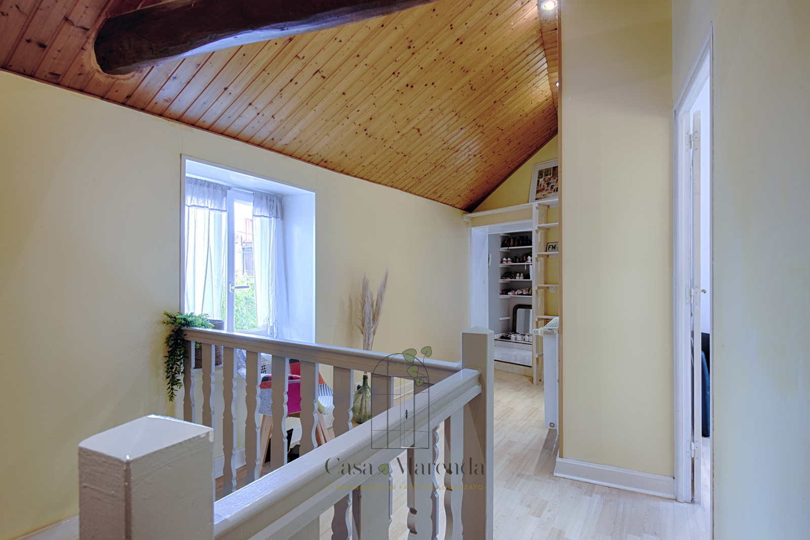 L’étage propose un vaste dégagement pouvant servir de bureau, 2 belles chambres une salle de bains avec 2nd toilettes.