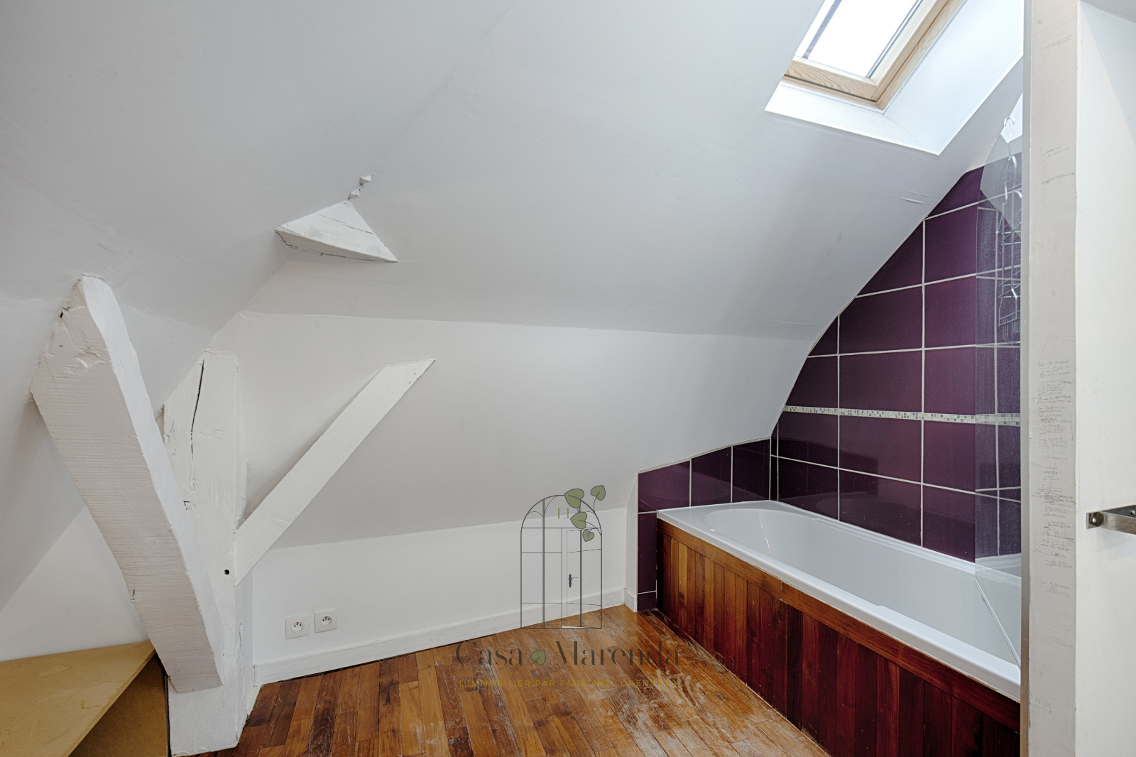 A l'étage, 2 belles chambres avec poutres appartentes, ainsi qu'une seconde salle de bains avec baignoire.